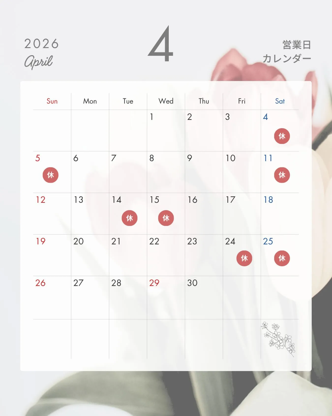 . 2026/03/30 . 3月も沢山のご来店ありがとうございました 🙇♀️ 4月の営業日です🌸 ご来店・ご予約お待ちしております(*^^*) #姶良市 #姶良市ランチ #古民家ランチ #お弁当テイクアウト #オードブル